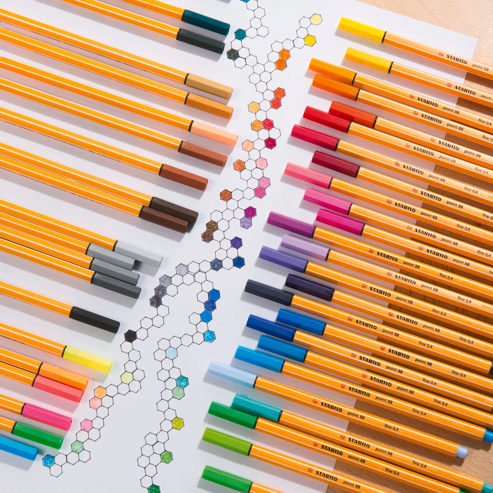 Stabilo Fineliner pens are my go-to tools for sketching and lettering. With so many vibrant colors available, I can create a wide variety of pieces and rich color mixes. The fine marker-like tips deliver consistent lines and, on most papers, they don’t feather or bleed.